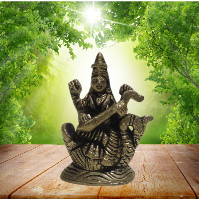 Aagam Stuti – Pure Brass Goddess Saraswati Murti in Yellow Finish for Home & Office Temple & Decor